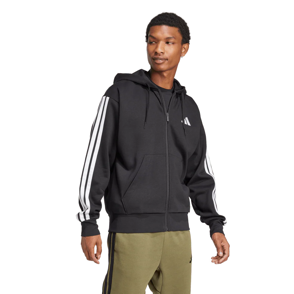 Adidas 3-Stripe Full Zip Fleece Hoodie Black