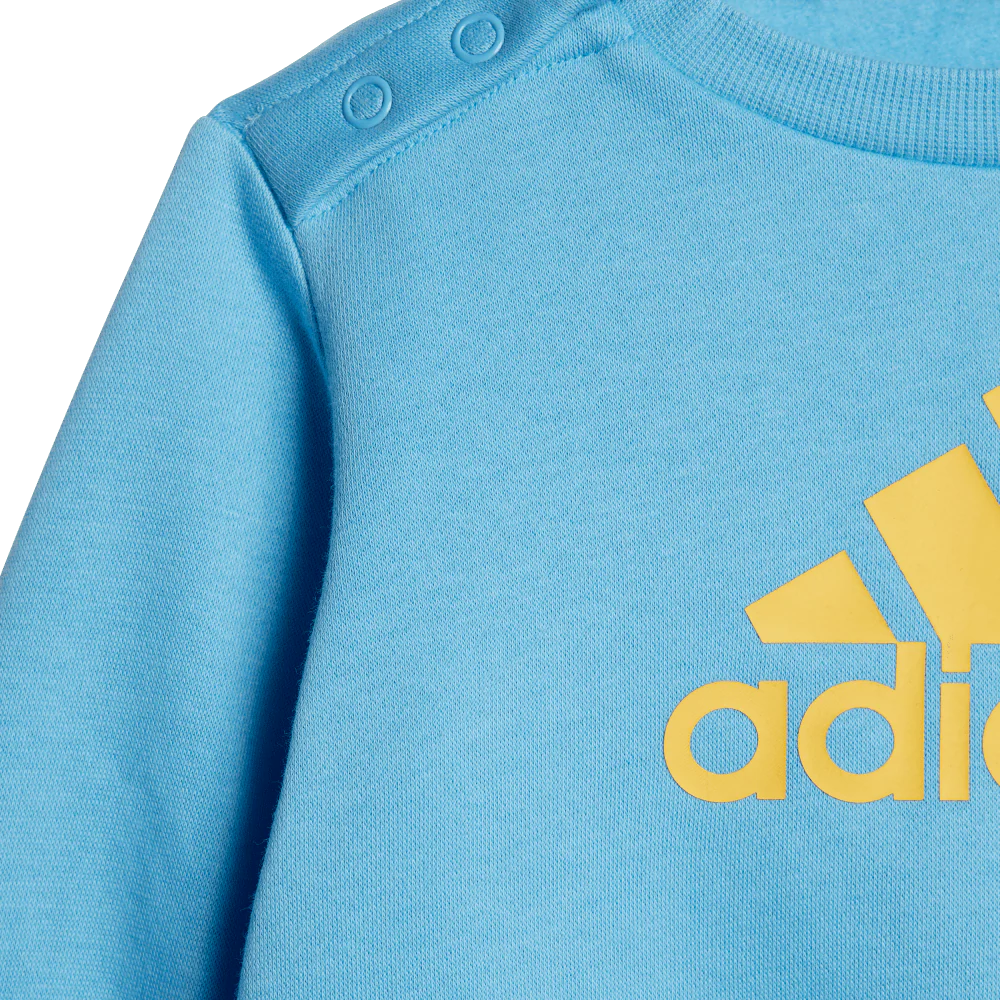 Your little one loves to watch you work out. Dress them in this infants' jogger set and draft them onto the tiny training team. Sporty 3-Stripes down the legs and a big adidas Badge of Sport on the sweatshirt ensure they'll feel like the stars they already are. Today's routine? Play all day.