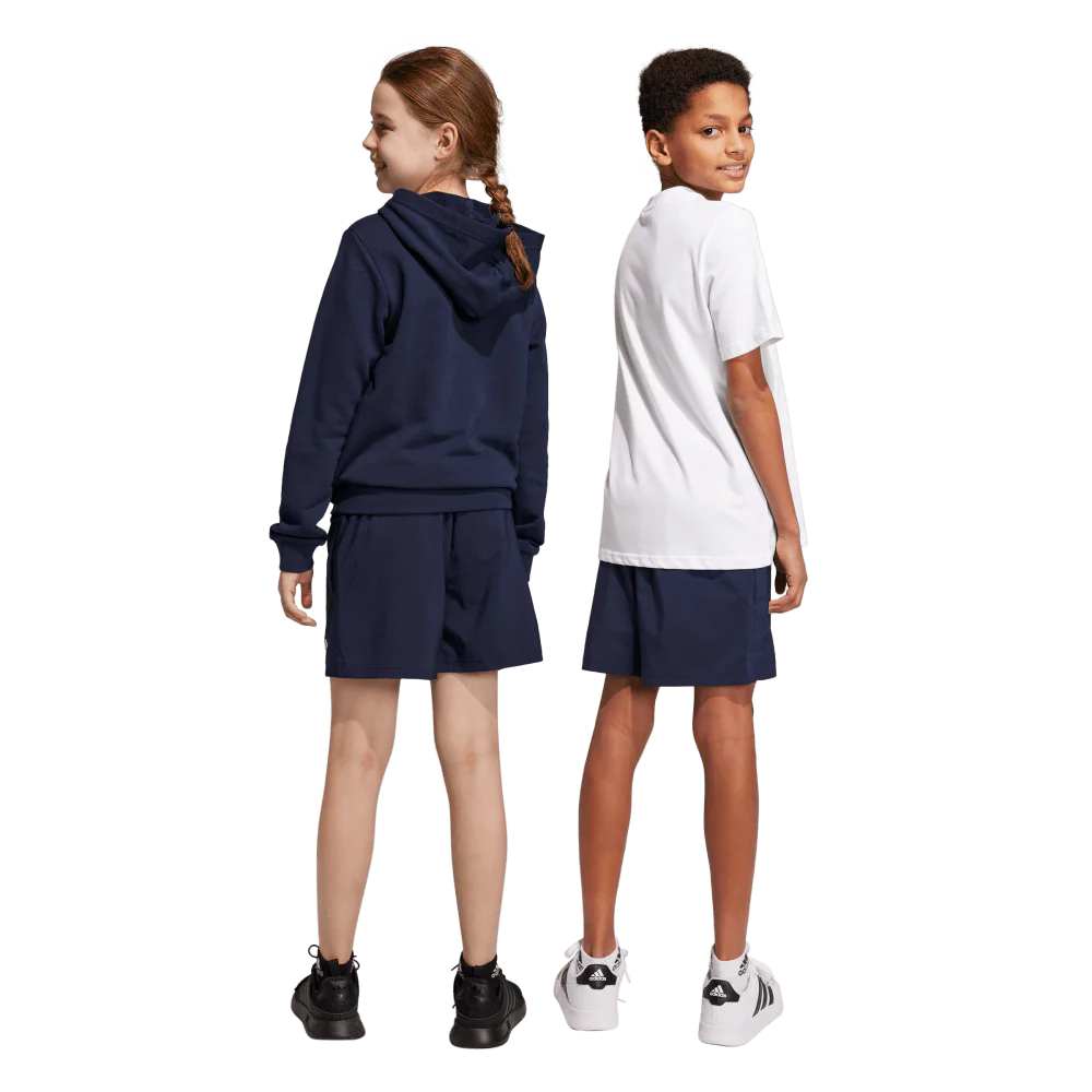 Adidas Kids' Chelsea Short Legend Ink (navy) is perfect for active young athletes. Its regular fit and elastic waist with drawcord ensures the perfect fit while its AEROREADY fabric and mesh lining keep them cool and comfortable. The 100% recycled polyester plain weave allows for maximum flexibility and durability. Side pockets provide convenient storage.