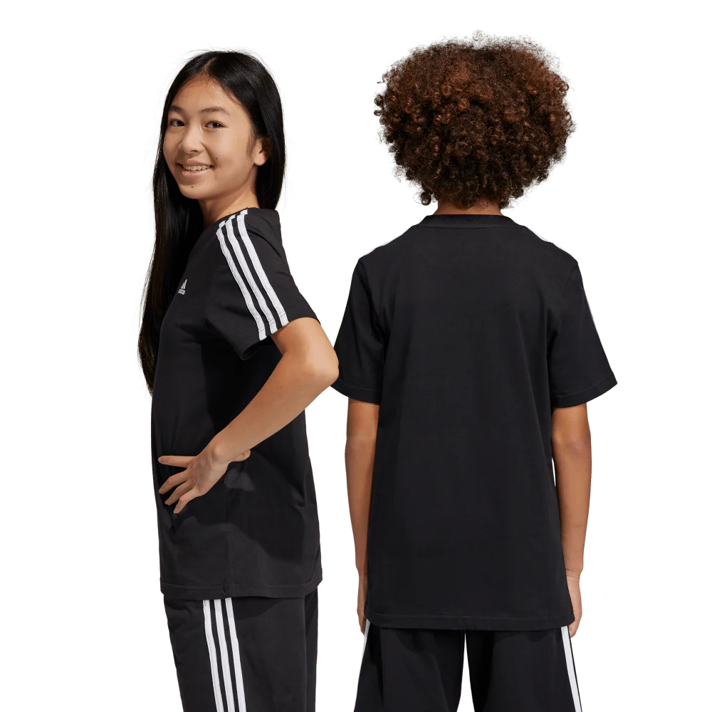 There's nothing like a trusty t-shirt you can throw on before you leave the house. This juniors' adidas tee is made of soft cotton single jersey for a lightweight and comfortable feel. Patched-on 3-Stripes run from the neck to the sleeves for a classic look. Our cotton products support more sustainable cotton farming.